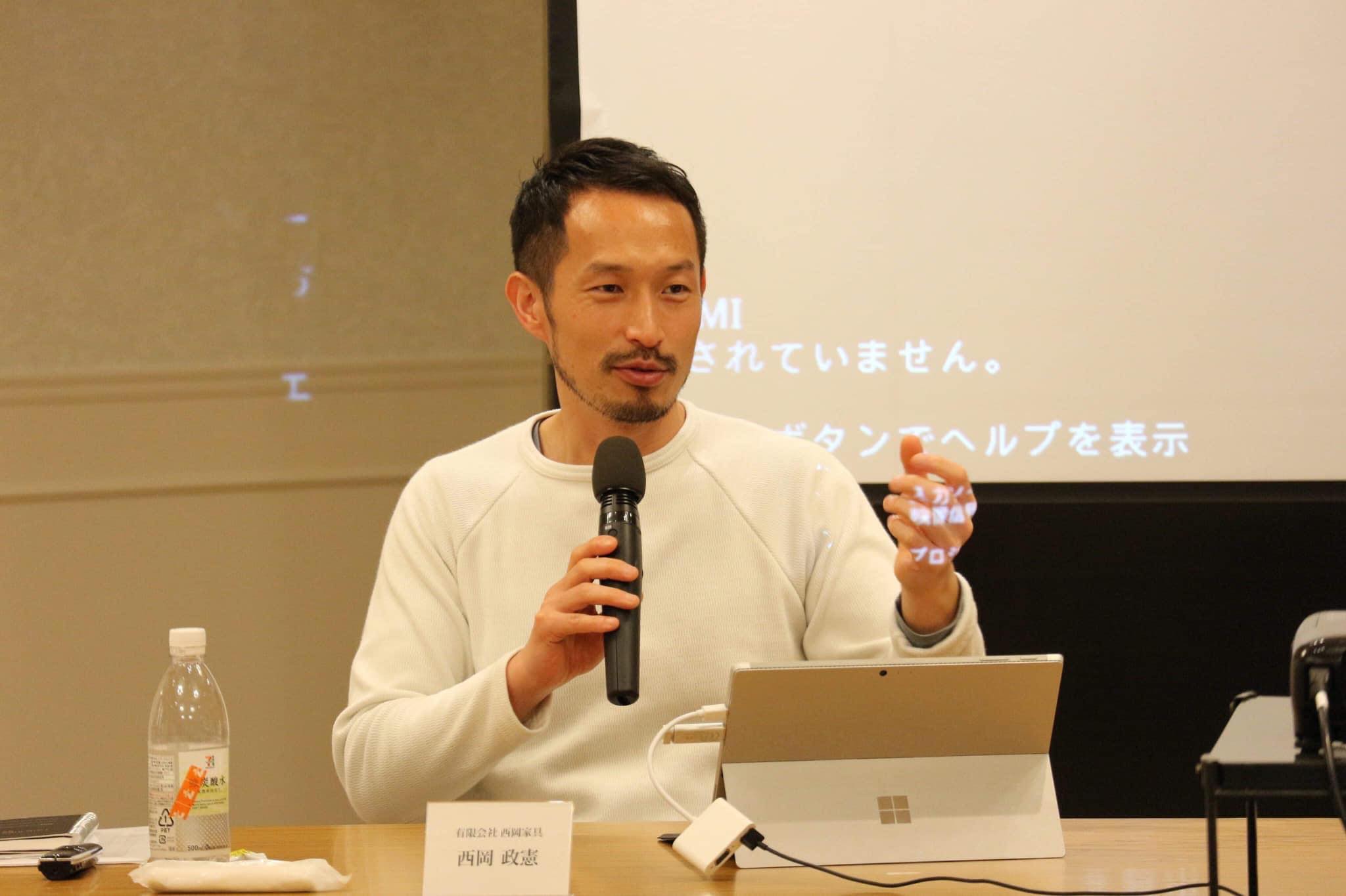 私は市内の高校を卒業後、大阪の家具店に修業に出ていましたが、2003年に父から帰って来て一緒に商売をして欲しい』といわれ、2003年に家業を引き継ぐため西岡家具に入社しました。経営状況は10年間利益が出ておらず、累積赤字が積み上がっていました。